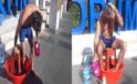 Susuzluğu protesto için belediye meydanında soyunup yıkandı