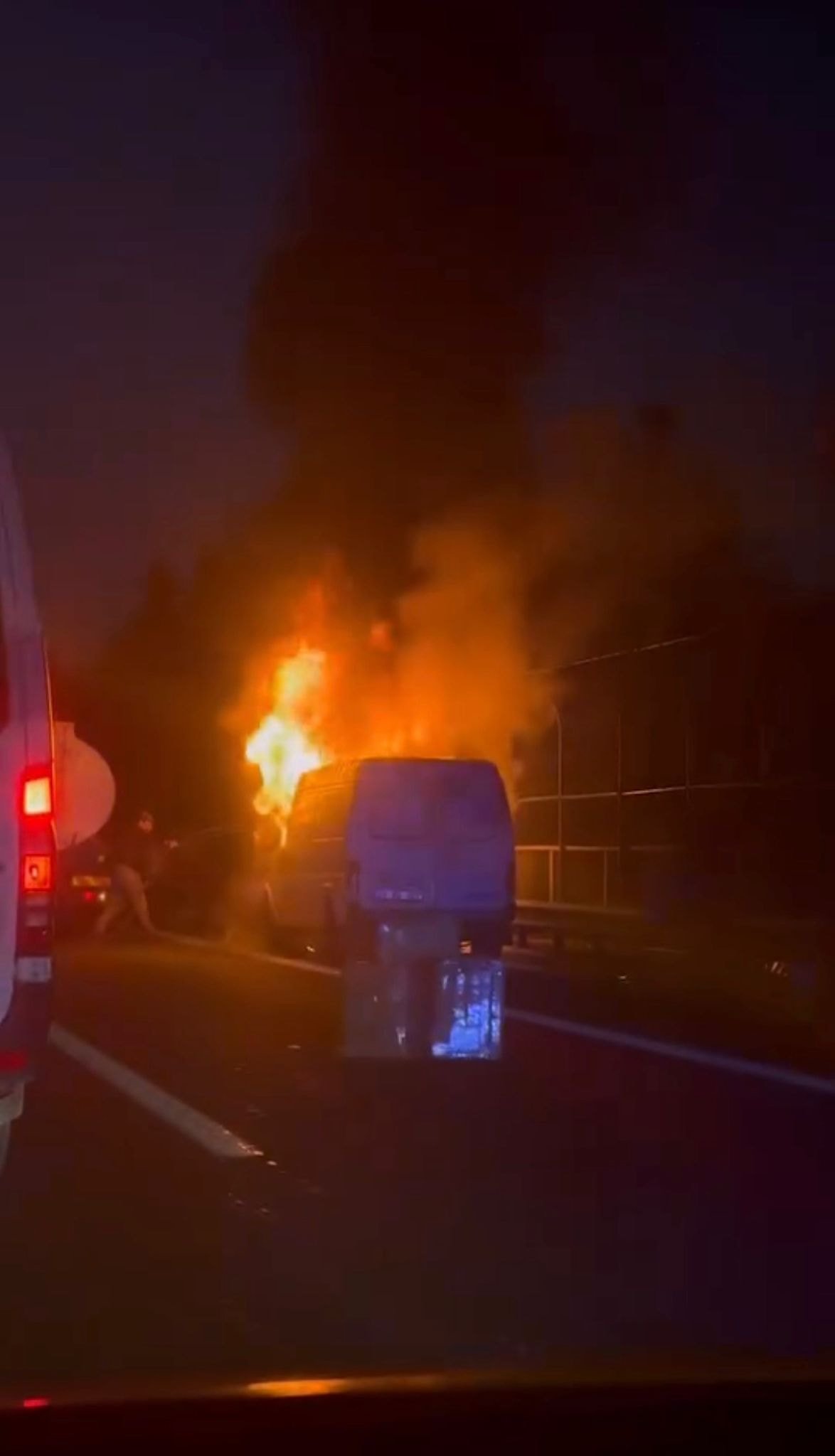 Yangın sırasında otoyolda trafik akışı bir süre kontrollü olarak sağlandı. Minibüsün alevler içinde kaldığı anlar, çevredeki vatandaşlar tarafından cep telefonu kamerasıyla görüntülendi.