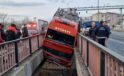 Lastiği patlayan itfaiye aracı iki köprü arasında sıkıştı: Yaralılar var