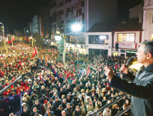 “Dünya ve bölgemiz kritik bir eşikten geçiyor. Türkiye’nin tüm tehditlere karşı ayakta durması gerekiyor. AK Parti toplumsal barışı zedeliyor. Darbenin üzerinden 353 gün geçti. Ekrem Başkan’a önce PKK’lı dediler, sonra evrakta sahtecilik yaptı diploması sahte dediler, yolsuzluk yaptı dediler. Sonra ajan dediler. Bir kişi bunların hepsi olabilir mi? Tayyip Bey, 9 Mart Pazartesi duruşma başlıyor. 10 Mart Salı Meclis açılıyor. Meclis’e canlı yayınlaması için getireceğiz. Savcısına güvenen karşımıza çıksın canlı yayın yapılsın.