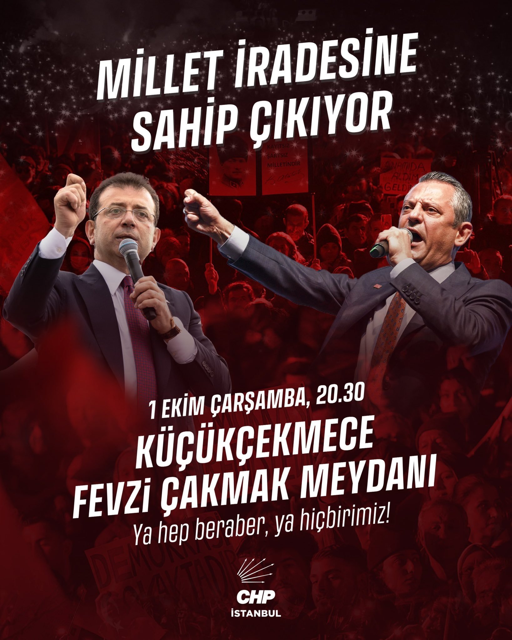 CHP’den paylaşılan afişe göre miting, 1 Ekim Çarşamba günü İstanbul’un Küçükçekmece ilçesinde gerçekleştirilecek.