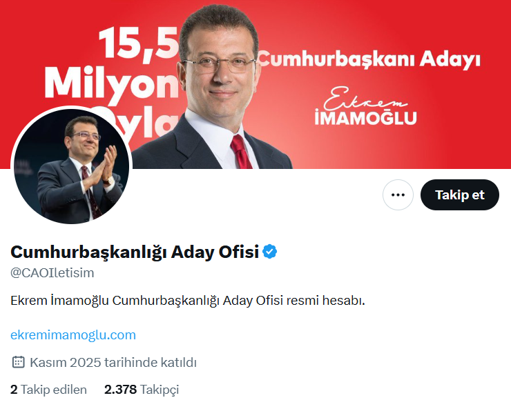 Söz konusu son erişim engelinin ardından İmamoğlu adına “CAOIletisim” kullanıcı adıyla yeni bir hesap açıldı.