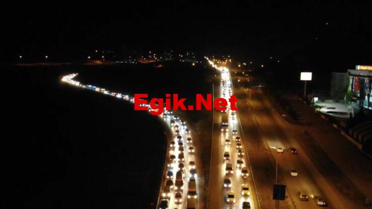 43 ilin geçiş güzergahındaki trafik yoğunluğu havadan görüntülendi