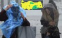 Fırtınada zor anlar: Uçmamak için trafik direğine tutundular