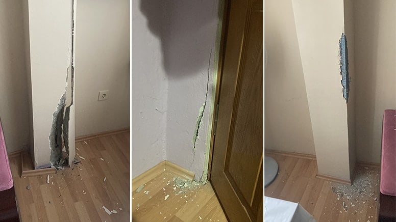 İncelemelerini tamamlayan ekipler, kolonlarında çatlaklar gördükleri binanın mühürlenmesine karar verdi.