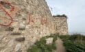 Tarihi kalenin duvarlarını sprey boyayla boyadılar