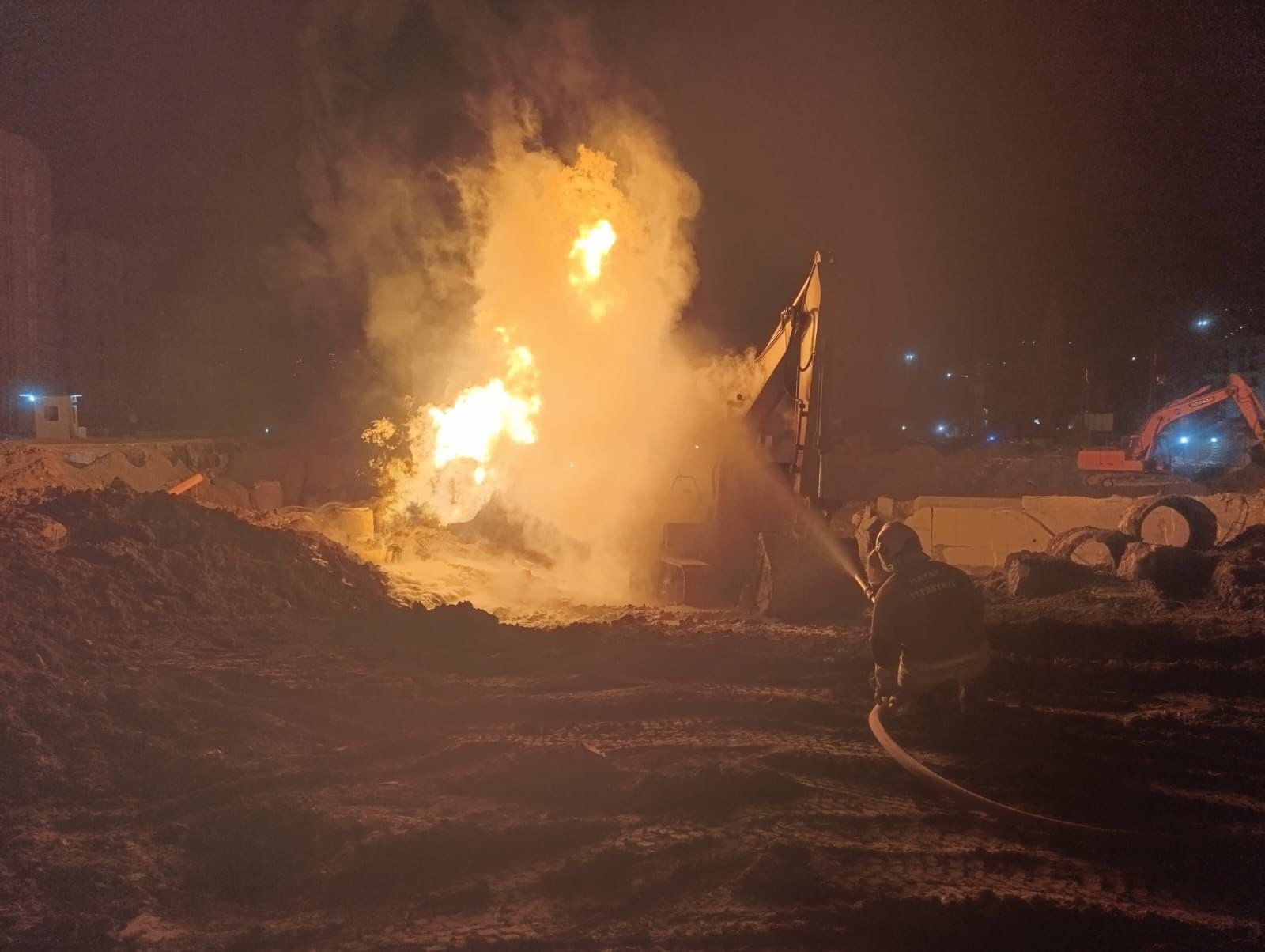 Alevlerin yükselmesiyle çevrede panik yaşanırken, bir iş makinesi de yangında kullanılamaz hale geldi. İhbar üzerine olay yerine itfaiye, sağlık ve polis ekipleri sevk edildi. İtfaiye ekiplerinin müdahalesi ve bölgeye verilen gazın kesilmesiyle yangın kısa sürede kontrol altına alındı.