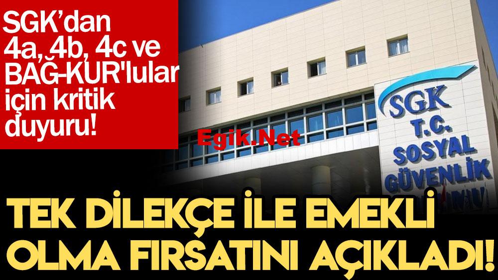 SGK’dan 4a, 4b, 4c ve BAĞ-KUR’lular için son dakika duyuru! Tek dilekçe ile emekli olma fırsatını açıkladı!