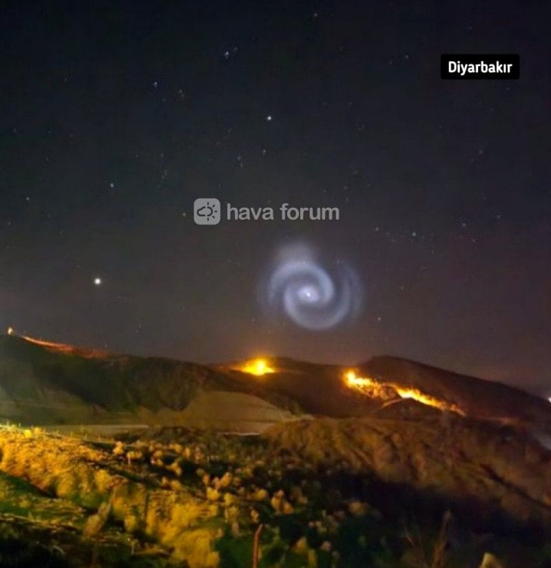 Spiral ışık, ikinci aşamanın yakıt boşaltmasından kaynaklandı ve Diyarbakır’dan 20:45 UTC’de göründü.