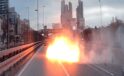 Şişli’de makas atarken bariyerlere çarptı: Araba patladı!