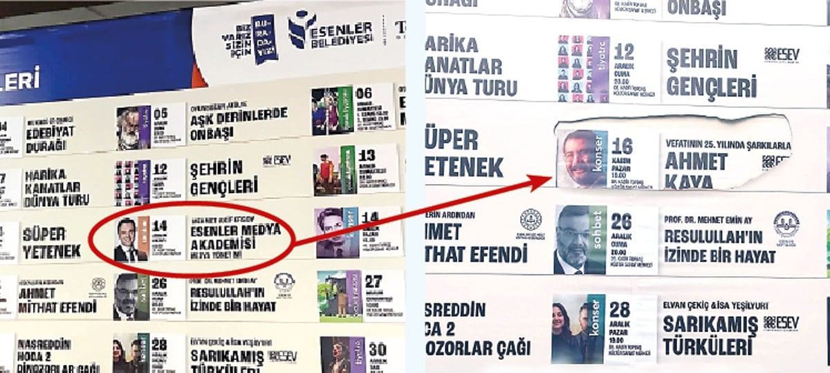 Belediyenin Kültür Sanat Etkinlikleri kapsamında 14 Aralık’ta Mehmet Akif Ersoy’u ‘Esenler Medya Akademisi’ etkinliğine konuşmacı olarak katılacaktı. Ersoy’un ‘Medya Yönetimi’ başlıklı sunumunu duyuran afiş, tutuklamanın ardından kimliği belirsiz kişilerce yırtıldı. Yırtılan afişin altından ise 16 Kasım 2000’de hayatını kaybeden protest müzik sanatçısı Ahmet Kaya’nın 25. yıl anma etkinliği çıktı. Bu arada belediyeden konuyla ilgili herhangi bir açıklama yapılmadı.