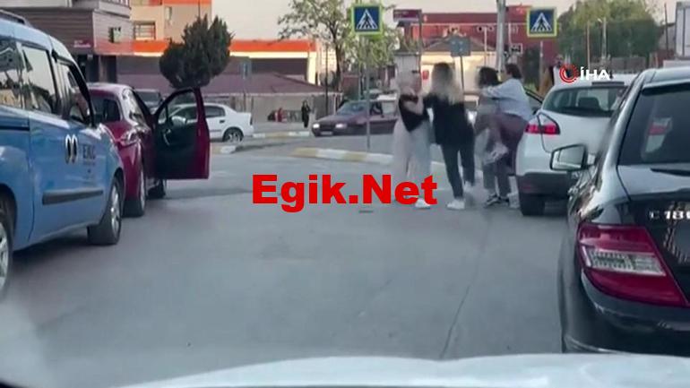 Pendik’te kadın sürücüler kavga etti, tekmeler havada uçuştu