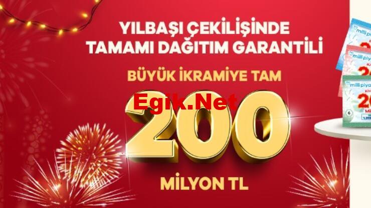 Bu yıl 200 milyon TL’lik büyük ikramiyenin tamamı dağıtım garantili. Yani bu yıl büyük ikramiyenin tamamı talihlilerin olacak. Milli Piyango tarafından yapılan açıklamada, yılbaşı özel çekilişinde dağıtılacak toplam ikramiye tutarının 1 milyar 395 milyon 900 bin TL olacağı açıklandı. İkramiye kategori sayısı 13’ten 15’e çıkarılırken, çekilecek olan kod sayısı da 622’den 1.012’ye yükseltildi. Böylece daha fazla sayıda kişi daha fazla ikramiye kazanma şansına sahip olacak.