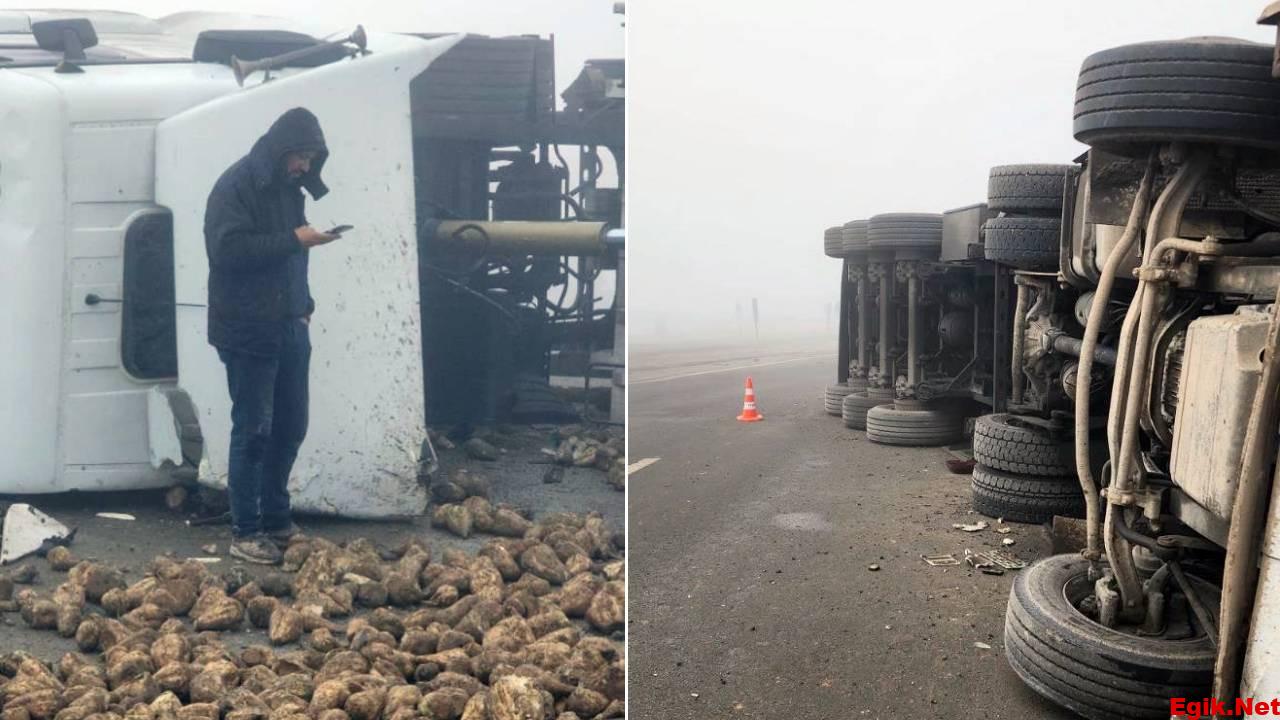 Afşin’de Kaza: Pancar Yüklü Tır Devrildi