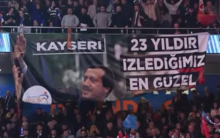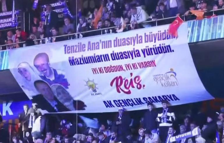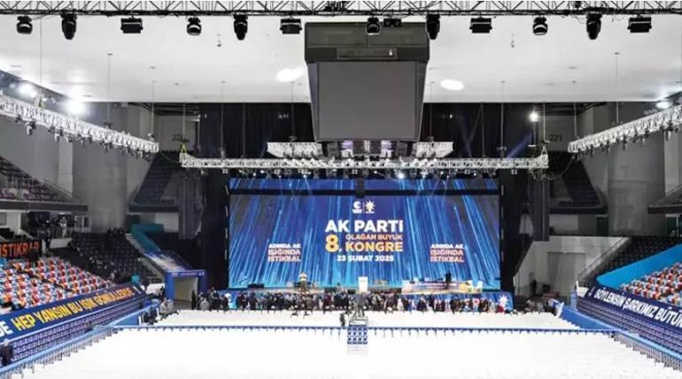 Kongrede arka planda led ekranların yerleştirildiği sahne hazırlanırken, Gazi Mustafa Kemal Atatürk ile Cumhurbaşkanı Erdoğan’ın fotoğrafları ve Türk bayrakları salonda yer aldı. Salona, “Tenzile Ana’nın duasıyla büyüdün, mazlumların duasıyla yürüdün”, “Sevdik seni her şeyden çok, Reis bize bu yoldan geri dönüş yok”, “Düşünemeyiz yarınları sensiz, bekle bizi 2028” pankartları da asıldı.