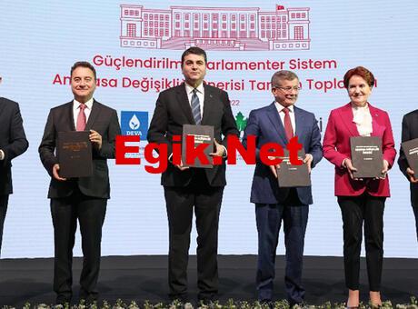 ANKARA Milliyet – Altılı Masa tarafından hazırlanan “Güçlendirilmiş Parlamenter Sistem Anayasa Değişikliği” liderlerin katılımıyla açıklandı. Aylar süren çalışmanın sunulduğu toplantının ardından gelen ilk tepkiler şöyle oldu: