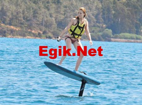 Yasemin Allen, daha sonra su sporlarına geçerek, denizde hünerlerini sergiledi. 35 yaşındaki güzel, elektrikli sörf tahtasıyla edeta şov yaptı.
