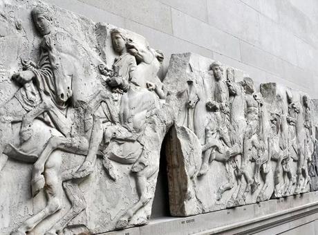 Mermer eserler M.Ö. 447-432 yılları arasında inşa edilmişti. British Museum’da sergilenen eserler arasında tapınağın duvar süslerinin (friz) 75 metrelik bir kısmı da bulunuyor. British Museum’un verdiği bilgiye göre, Lord Elgin eserleri bir padişah fermanına dayanarak 1801-1816 yılları arasında İngiltere’ye götürdü. Dönemin İngiltere hükümeti, yaptığı araştırma sonucu eserlerin İngiltere’ye götürülmesinin ‘yasal’ olduğu sonucuna vardı.